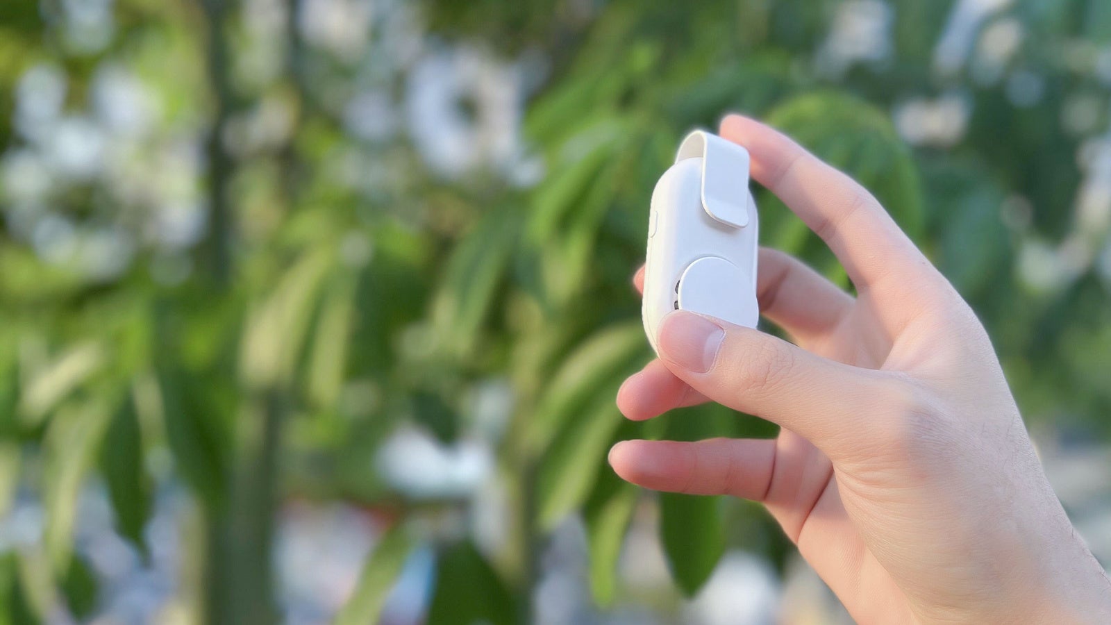 クリップ式で、パチっとマスクに止めてボタンを押すだけの簡単操作です。デバイスはマスクの内側に装着し、マスクによりフィルターされた空気を吸いこんで送風します。マスクの外側に出るのはクリップ部分だけなので、見た目に違和感なく、外気に触れないので衛生的にも安心。