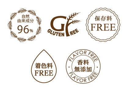 自然由来成分/グルテンフリー/保存料不使用/着色料不使用/香料不使用