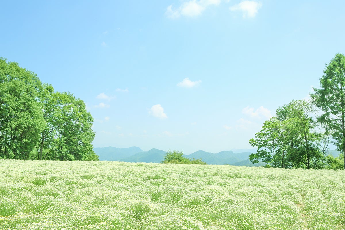 北アルプスの山々に囲まれた長野県池田町にある「カミツレの里」。約4万坪の豊かな自然の中に、有機JAS認定のカモミール自社農園・カミツレエキス製造工場・宿泊施設「八寿恵荘(やすえそう)」があり、ありのままの華密恋をご体感いただけます。