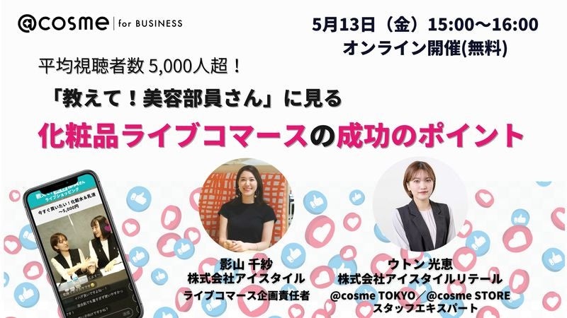そうした今後コスメ領域におけるライブコマースを検討する際の考え方のヒントになるイベントにしていきますので、ぜひご参加をお待ちしております。