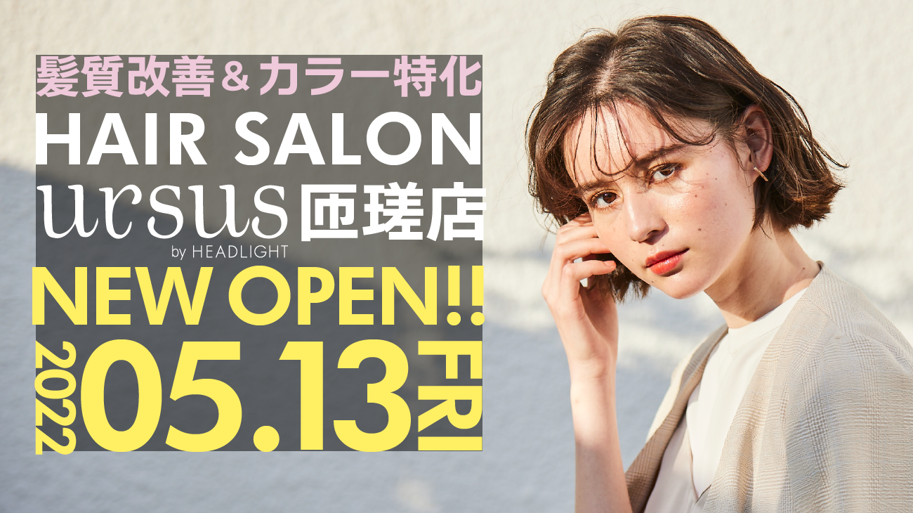 全国でヘアサロン・アイラッシュサロンなどを展開している株式会社ヘッドライト(本社: 東京都 港区、代表取締役 髙橋 健介)は、2022年5月13日(金) 千葉県匝瑳市に髪質改善とカラーに特化した美容室「ursus by HEADLIGHT(アーサス バイ ヘッドライト) 匝瑳店」をオープンします。