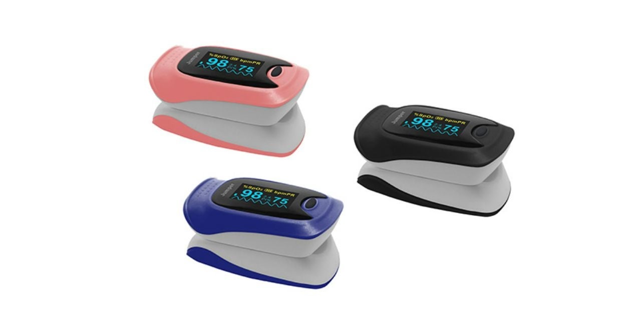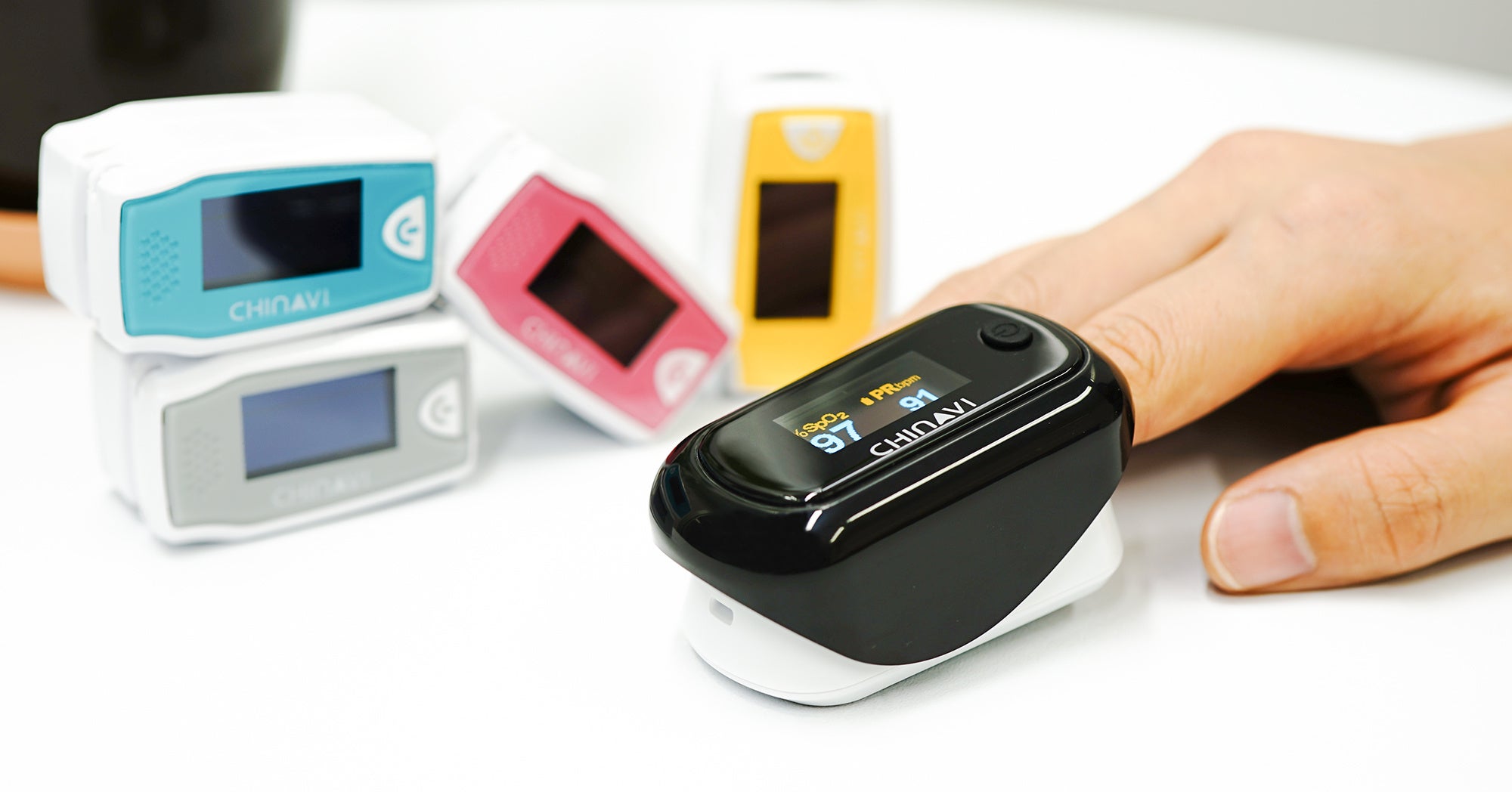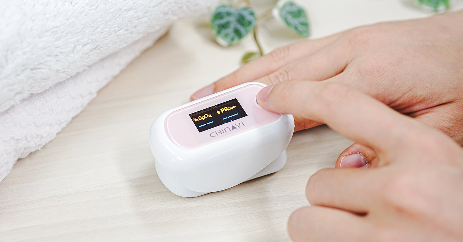 パルスオキシメータとは、指先に装着して血中酸素飽和度を測定する医療機器で、呼吸器に持病のある方の日々の健康管理などに用いられています。また、新型コロナウイルス感染症の陽性者が症状悪化により呼吸機能の低下や呼吸不全に陥ると、血中酸素飽和度が平常時より低下します。そうした患者の体調の変化を迅速に把握するため、一部自治体や医療機関などでは自宅での健康観察にも活用されています。