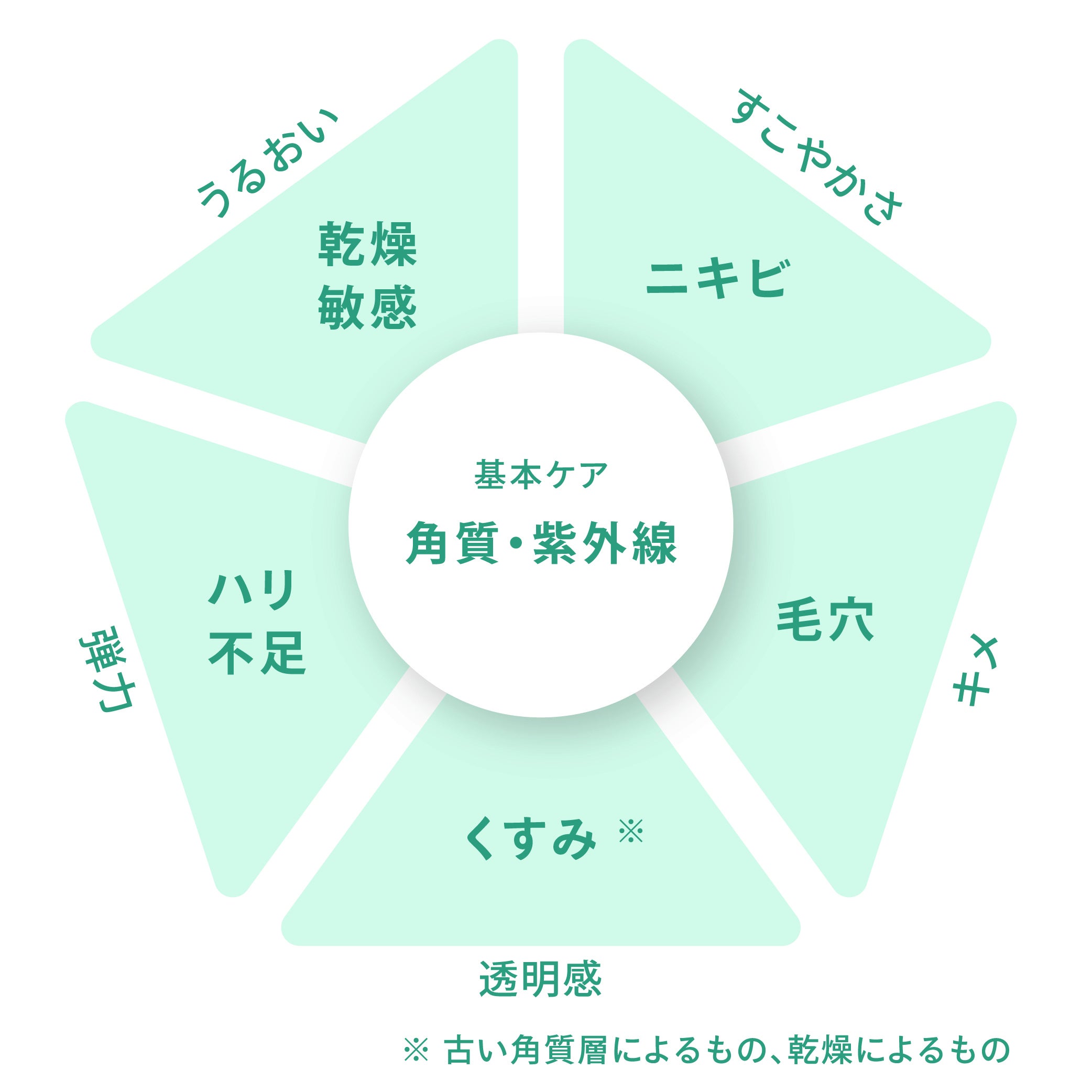 美肌の5大要素をもとに、肌悩み別のラインナップをお届けします。