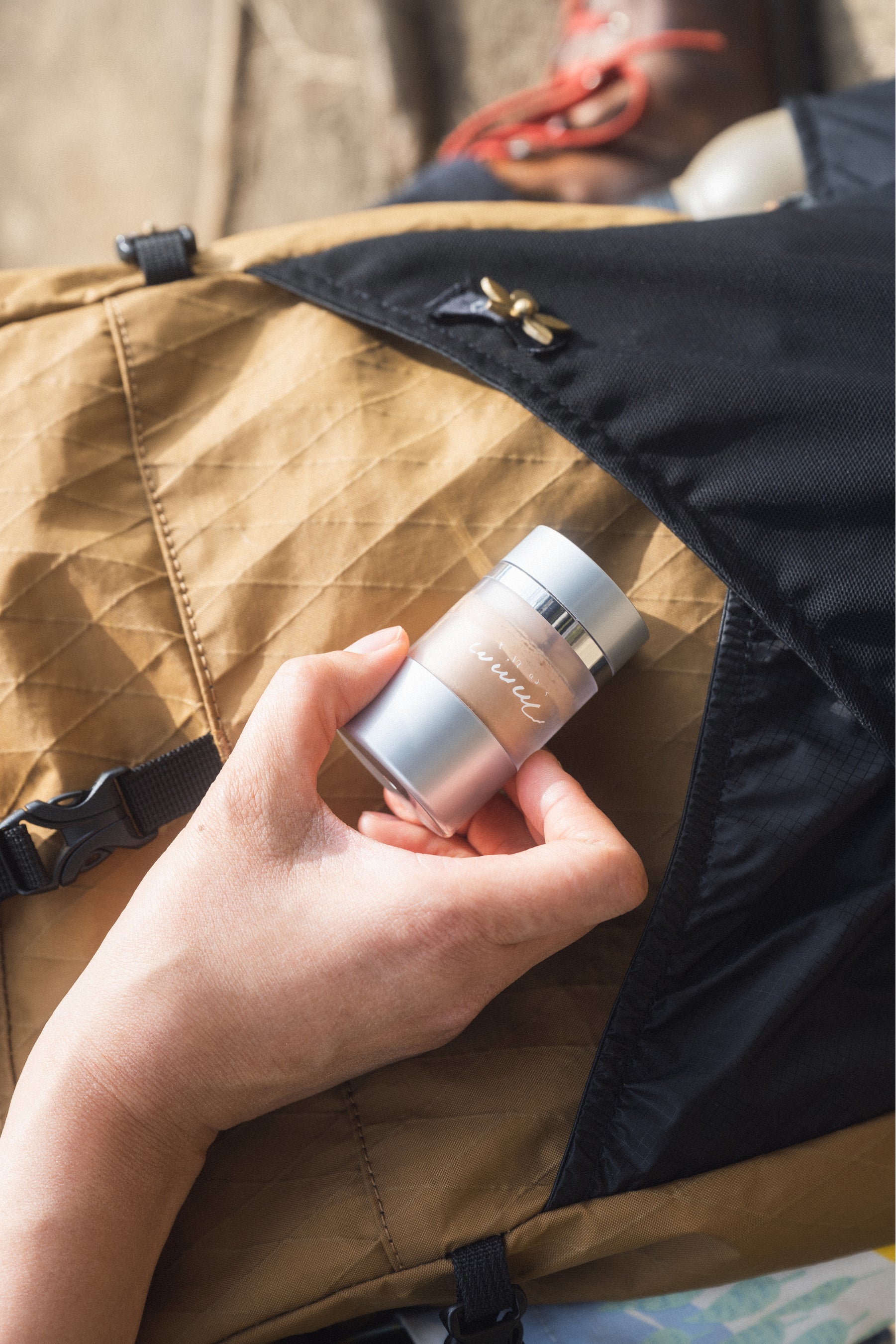 「山のなかのメイク直しでこれまで抵抗があったのは、液体の日焼け止めを手のひらに伸ばすこと。