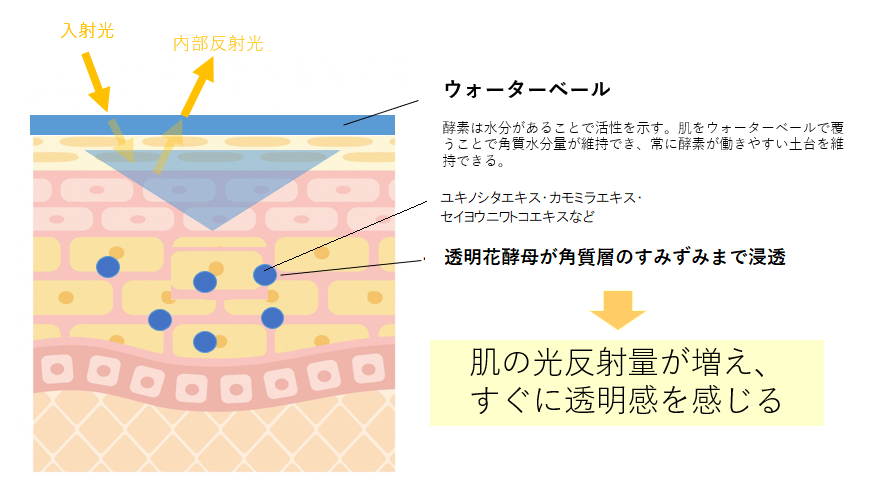 さらに、水分により活性化する美肌酵素の環境も同時に整えることで、バリア機能をサポート。透明感を妨げる外的ダメージに負けない肌をはぐくみます。