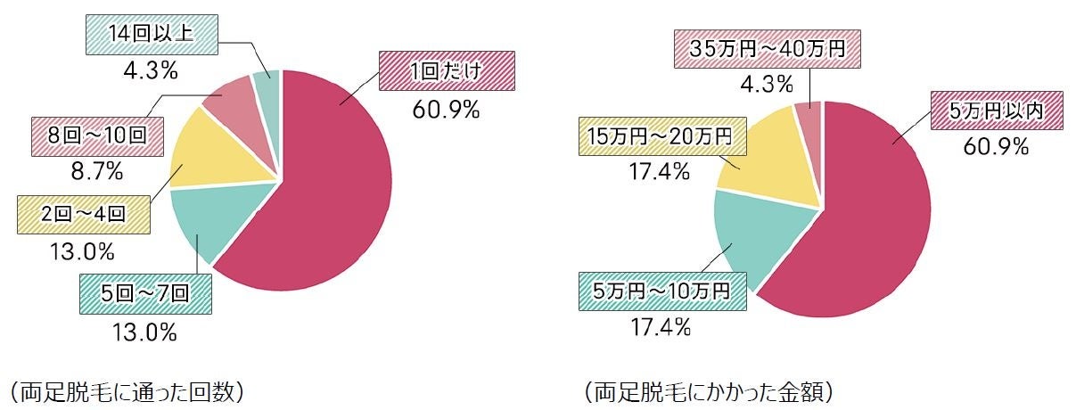 両足は1回のみで済ませている人が6割を占めることが明らかに。予算も5万円以内と答えた人が60.9%という結果になった。毛が比較的薄い部位なので、1回でも満足している人が多いのかもしれない。