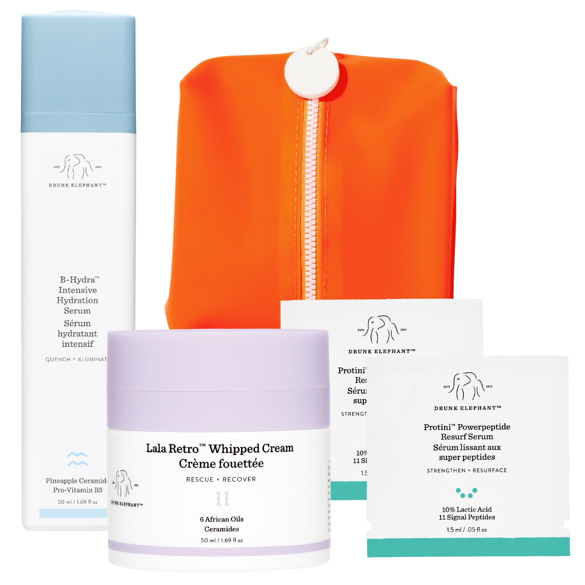人気クリームと保湿液を現品で、さらに朝晩使えるセラムをサンプルで試せる特別なセットが登場。なりたい肌に合わせて、クリームを選びドランク エレファントの”成分引き算主義”を体験して。