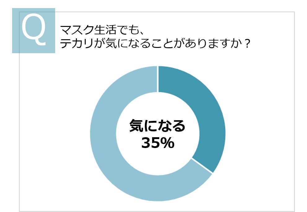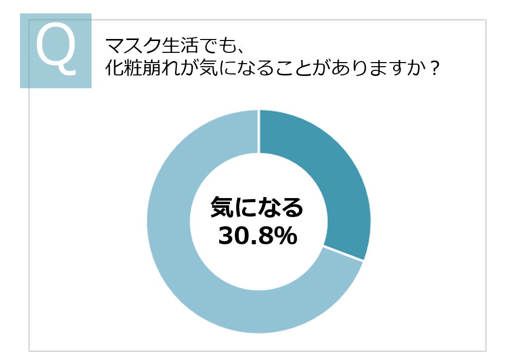 - ①マスク生活でもテカリや化粧崩れは気になる 3割以上がマスク生活でもテカリや化粧崩れが気になったことがあるという結果に