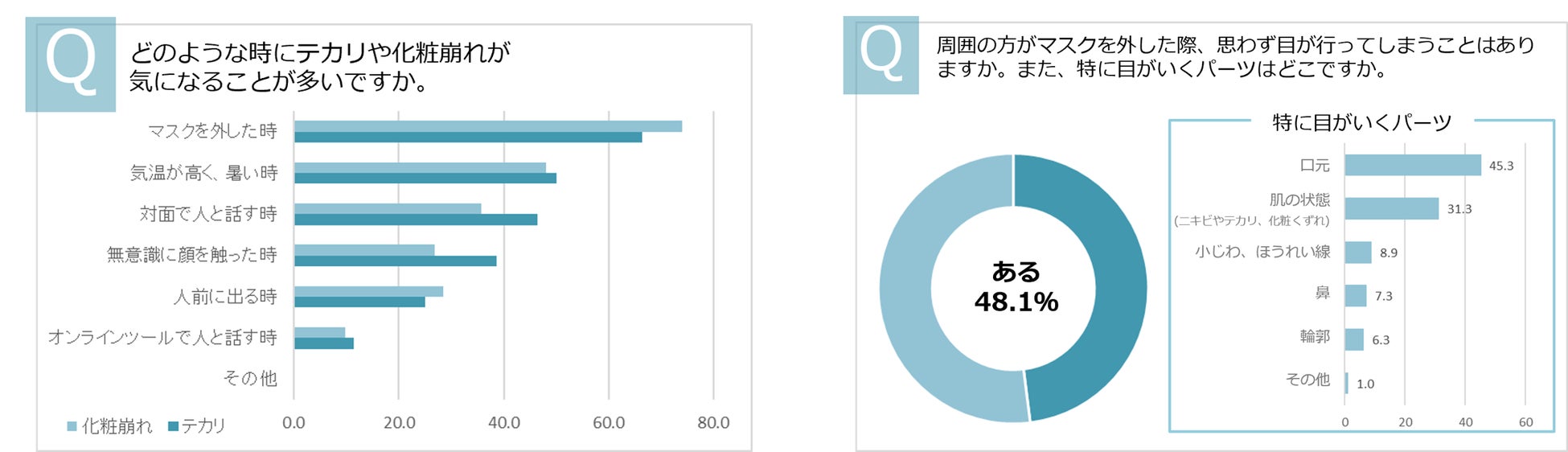 3割以上がマスク生活でもテカリや化粧崩れが気になったことがあるという結果に