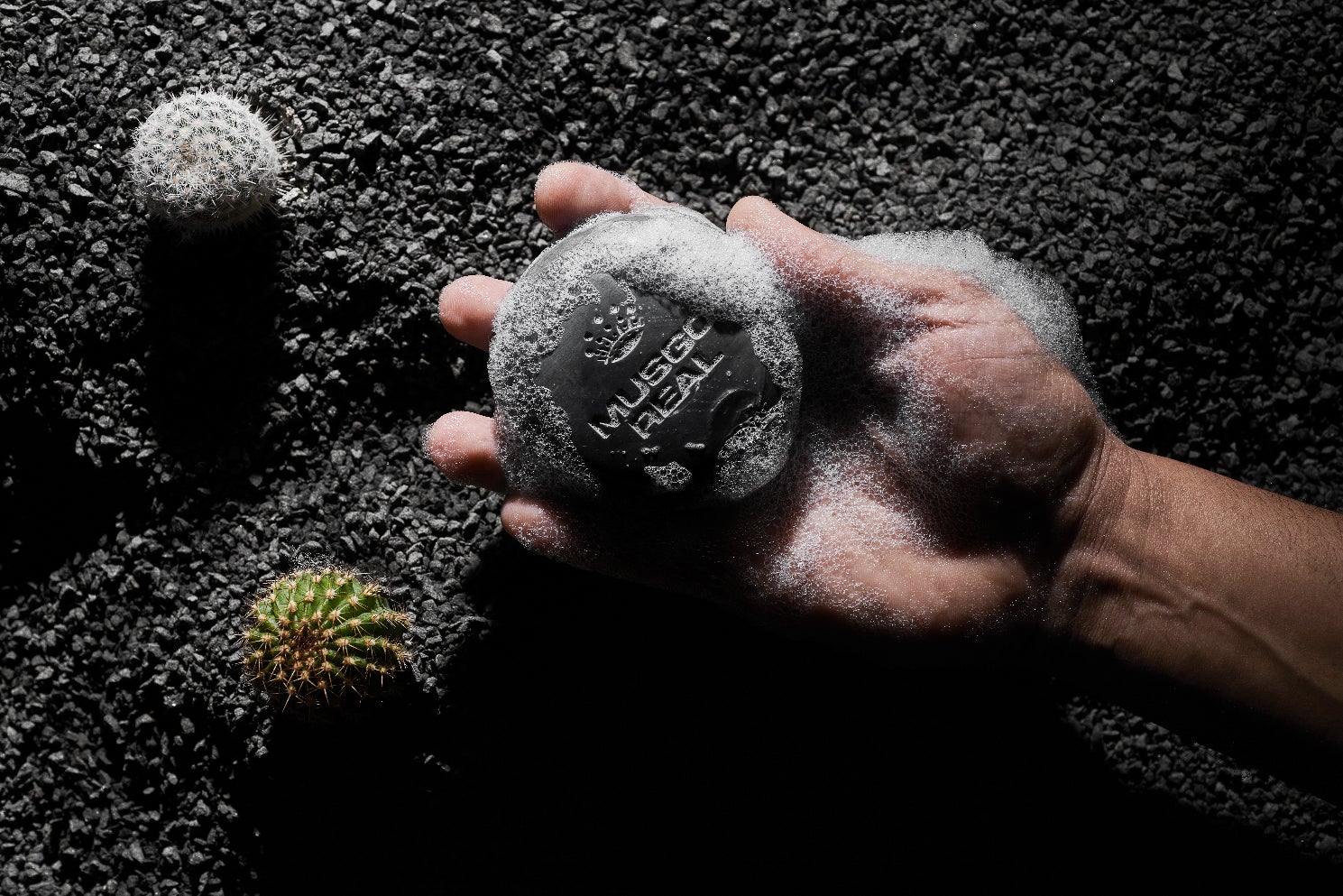 そのMUSGO REALの中でも最もラグジュアリーでミステリアスなシリーズ、BLACK EDITION(ブラック エディション)から髪だけでなく体にも使用できるオールインワンであり、すべての髪質に適した処方のソリッド シャンプーが登場。