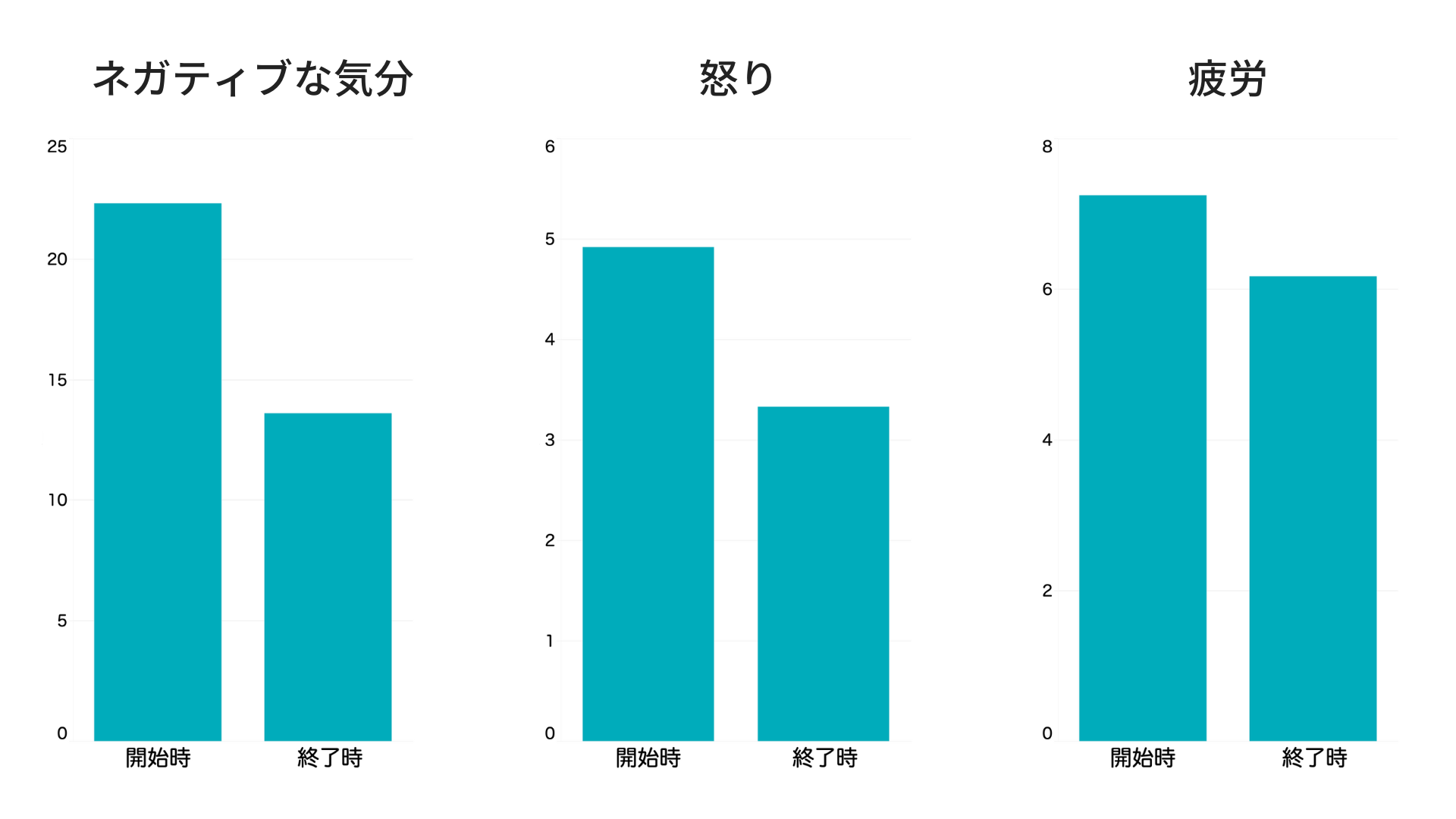 ネガティブな気分、怒り、疲労といった項目について、一定の改善傾向が見られました。