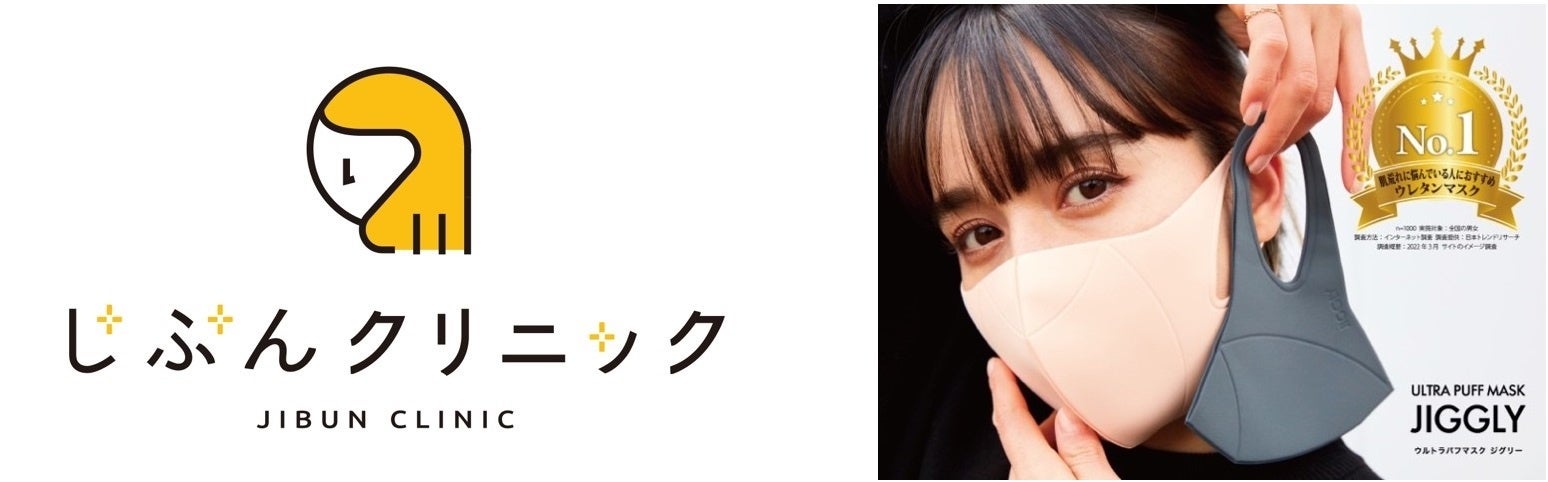 この度、「じぶんクリニック」にて5月13日(金)から期間限定でスタートする「顔・VIO付き全身脱毛プラン」をご契約の先着342名の方に、メイクパフの素材で作られた“ぷるぷる新感触”な次世代マスク「ウルトラパフマスクJIGGLY(ジグリー)」を無料*2でご提供いたします。マスク生活で肌荒れに悩んでいる方に向けて、少しでも肌に負担がかからないようにと開発されたJIGGLY(ジグリー)は、湿式ポリウレタン素材で毛羽立ち、縫い目がないため、デリケートな肌にとっても嬉しいマスクです。今回のコラボ企画は、顔脱毛後のお肌はいつもよりデリケートな状態になっているからこそ、「肌に負担の少ないマスクを」という双方の想いが合致したことで誕生したサービスです。さらに、じぶんクリニックの患者さま限定で、当社が運営するオンラインショップ「SPICE OF LIFE」にて5月13日(金)〜6月30日(木)の期間で、JIGGLY(ジグリー)がお得に購入できる特別キャンペーンも開催いたします。