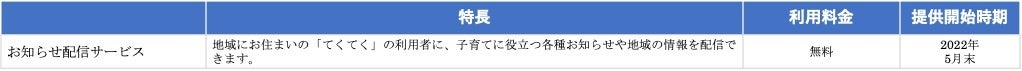 「てくてく」は、「母子手帳」機能や「妊娠・子育てコラム」、行政手続きへのアクセスなどをワンストップで提供するスマートフォン(スマホ)向けの無料のウェブサービスで、ソフトバンクの強みであるICT(情報通信技術)の活用により、子どもの成長に寄り添い、より安心して育児ができる社会の実現に貢献することを目的としています。また、子育てにおいて気になる点がある場合に、専門機関への早期の相談を促すことで、子育てに悩む保護者の孤立を防止することを目指しています。自治体は「てくてく」を無料で導入でき、当該地域にお住まいの「てくてく」の利用者に、子育てに役立つ各種お知らせを配信することが可能です。また、今後自治体向けの機能・サービスを拡充する予定です。