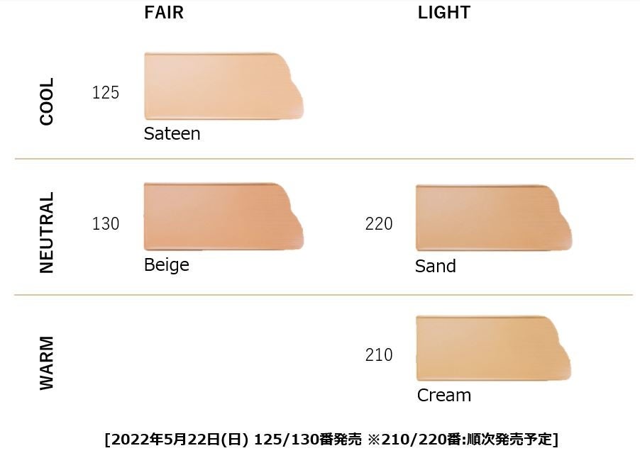 この処方は汗に強く色移りしにくく、朝から晩まで美しいルミナスマットな肌が続き、毎日のメイクに大活躍します。全4色展開で、各色ともスキンケア成分と天然由来成分でコーティングされたピグメントを配合し、‘自分の好みにぴったり’な仕上がりを叶えます。