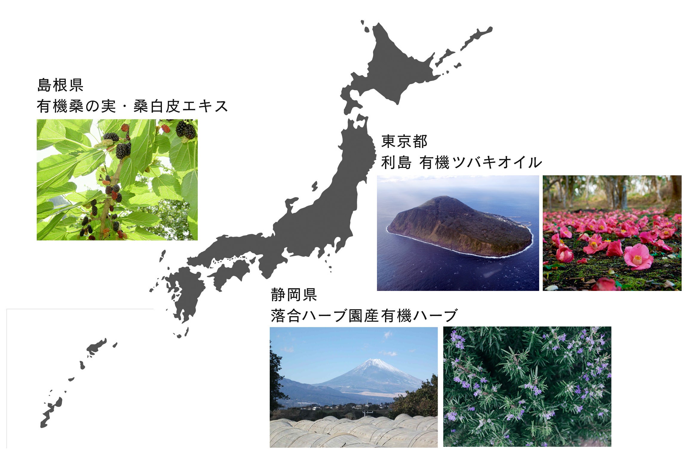 東京から南へ140㎞程離れた利島で完全無農薬で有機栽培された藪椿を圧搾して取れた、オーガニック認証取得のオイルを配合。