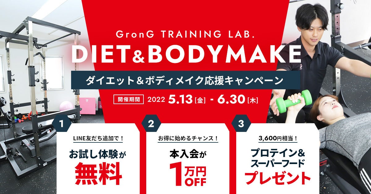 2022年5月13日(金)、株式会社Ultimate Life(本社:大阪府大阪市東成区/代表:田中悠貴)は、大阪市天王寺区で運営しているパーソナルトレーニングジム「GronG TRAINING LAB. 桃谷店」で、『ダイエット&ボディメイク応援キャンペーン』を開始しました。