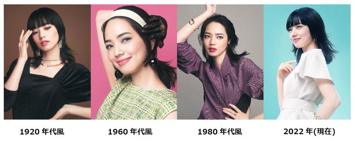 小松菜奈さんがタイムトラベラーに扮し、当時の時代背景やストーリーをふまえたヘアメイクやスタイリングを「今取り入れたいメイク」としてアレンジし、披露します。1920年に流行した骨格感を活かしたカラーレスメイクや、60年代のポップさを活かしたメイク、