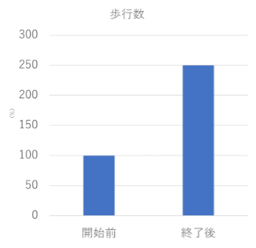 ・開始時と終了時を比較して2.5倍の歩行数増加。