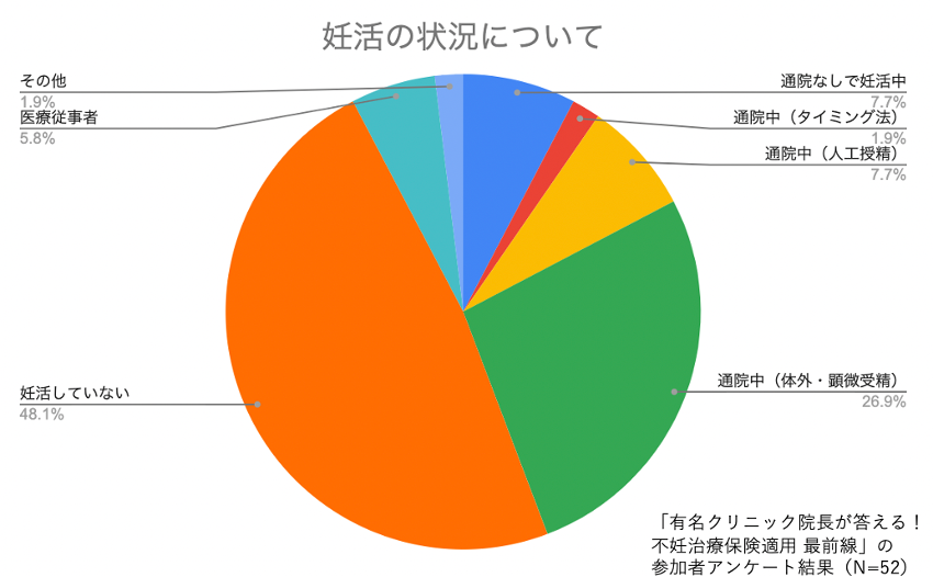 また、48%が「妊活していない」と回答しており、受診中の方だけでなく、これから妊活を始めるにあたり情報収集をされたいという方にも参加いただけております。