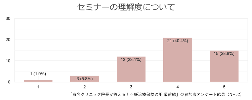 当日は、中川先生による2022年4月から開始した不妊治療の保険適用に関する詳しいご説明と、事前に受け付けていた質問に対して回答する形式で進みました。セミナーは大変盛況のうちに終えることができ、終了後に実施したアンケートの結果も非常に満足度が高いものになっています。また、開催後もアーカイブ動画の閲覧希望の問い合わせが多く届いており、期間限定で6月9日まで申込者に無料で公開することを決定しました。