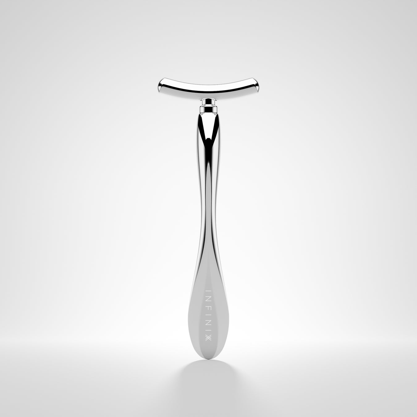 程よく重みのあるT字型のツールは、インフィニクス独自のメソッド『ep.13理論』に基づいたマッサージ『エピジェネティックマッサージ™️』に最適です。血流を促して柔らかなお肌(※5)へと導き、フェイスラインを整えます(※5)。