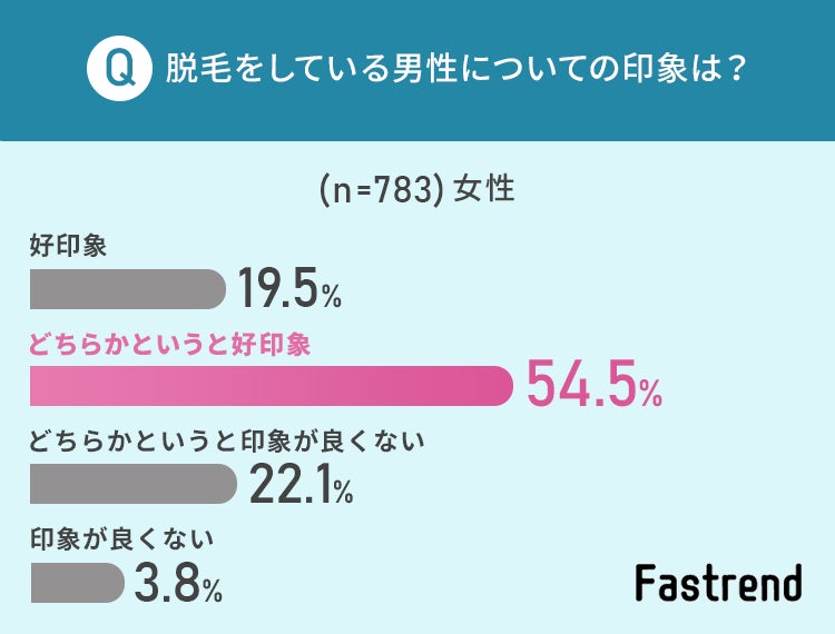 全体の約74%の方が、脱毛をしている男性に対して良い印象を持っていることが分かりました。