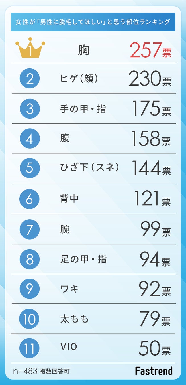 【女性483人に聞いた!】男性に脱毛してほしいと思う部位ランキング!
