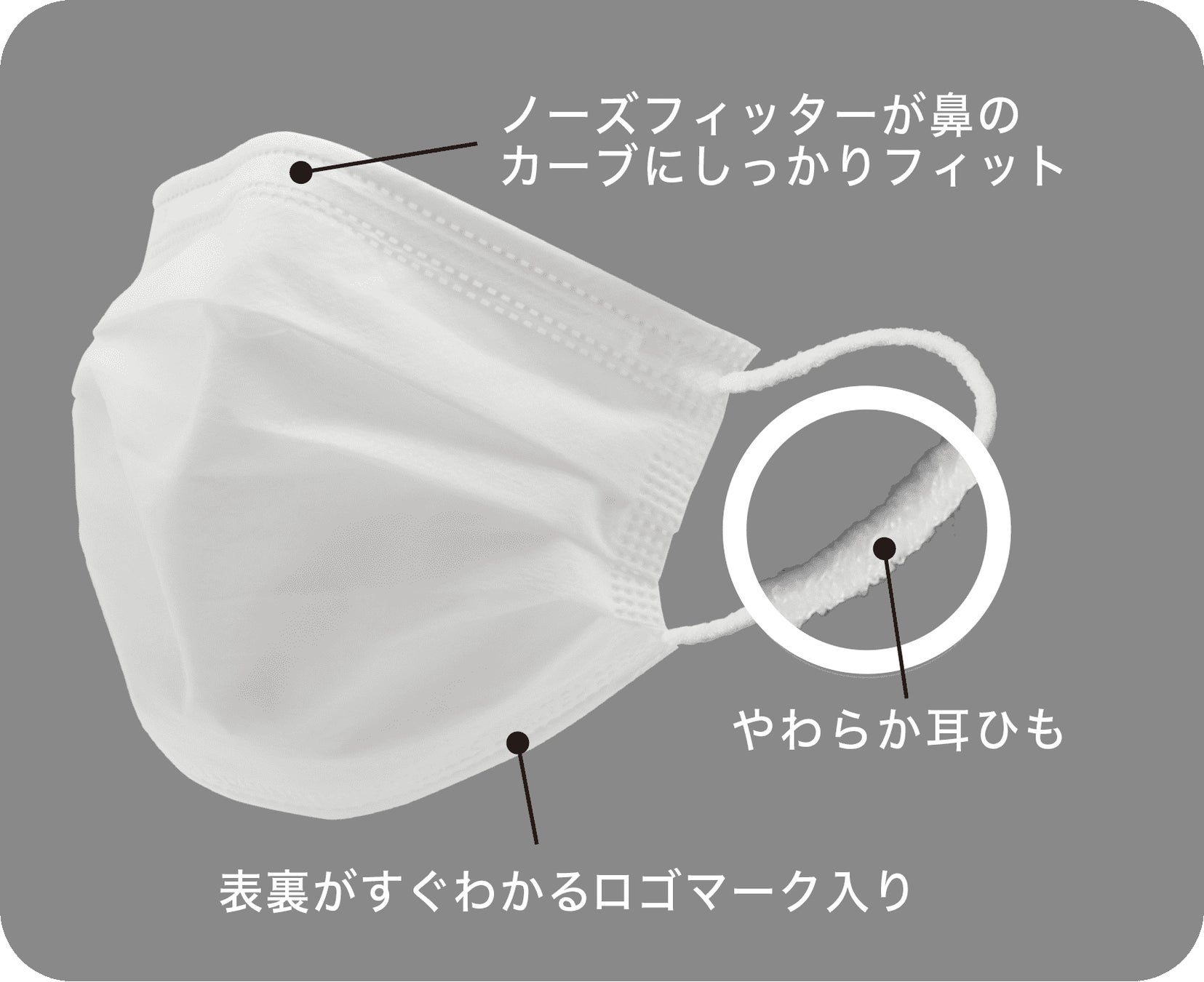 医療用マスク(サージカルマスク)は性能上、一般的に通常マスクよりも通気性が低くなり、着用して息苦しく感じる傾向にありますが、弊社の医療用マスクは、通常のマスクと通気性は変わらず、軽やかな付け心地を実現しております。又、太めのやわらかい耳紐を使用しており、長時間着用しても快適にご利用いただけます。