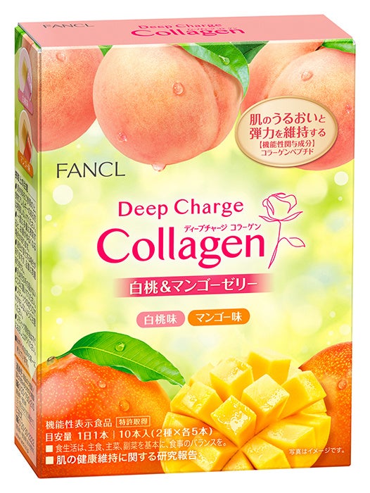 株式会社ファンケルは6月16日(木)から、「ディープチャージ コラーゲン 白桃&マンゴーゼリー」(1箱10本入り/価格:2,268円<税込>)を通信販売と直営店舗にて数量限定で発売します。同製品は機能性関与成分「コラーゲンペプチド」を配合し、「肌のうるおいと弾力を維持する」機能性表示食品です。約90%の方が美味しいと評価した人気の味「白桃味」と「マンゴー味」をアソート(詰め合わせ)にしました。ほかにもファンケル厳選成分のバラつぼみエキスやヒアルロン酸などを配合しており、体の中から美しさにアプローチします。