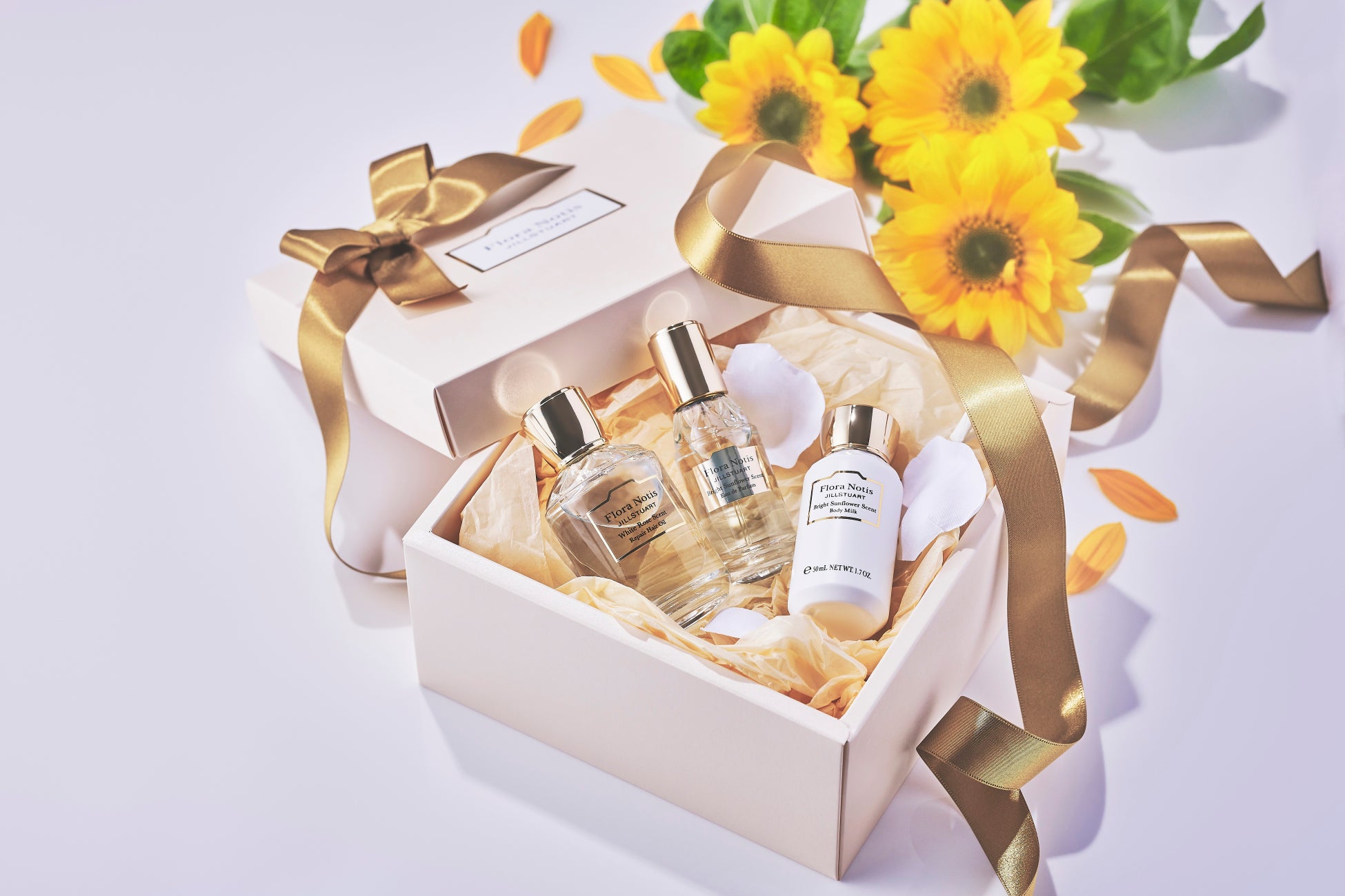 ・期間中、フローラノーティスの商品を1品以上ご購入の方に「ブライトサンフラワー」のボディオイル&ミルクのラミサンプルと限定オリジナルショッパーをお渡しいたします。
