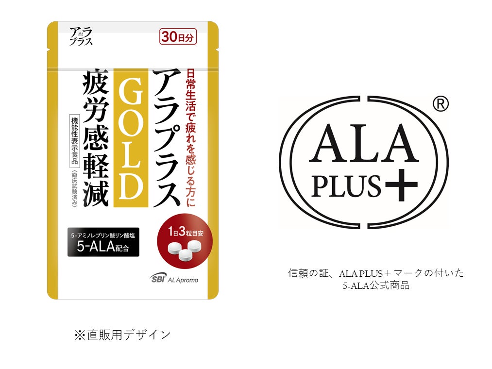 SBIホールディングス株式会社の子会社で5-アミノレブリン酸リン酸塩(5-ALA(※1))を利用した健康食品、化粧品の製造・販売等を行っているSBIアラプロモ株式会社(本社:東京都港区、代表取締役:竹崎 泰史、以下「SBIアラプロモ」)は、機能性表示食品「アラプラス ゴールド 疲労感軽減」を2022年5月16日より順次、ドラッグストア等の販売代理店や、SBIアラプロモ公式オンラインショップ「アラ・オンライン」(https://www.5-ala.jp/)を通じて発売いたします