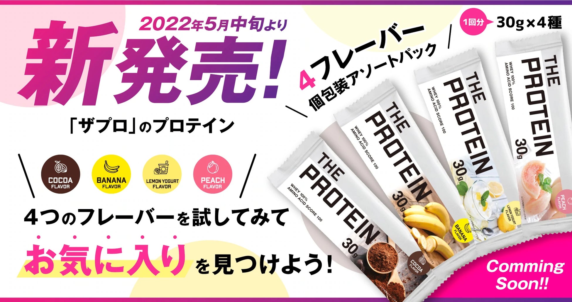 商品名:武内製薬ザプロ(THE PROTEIN) 30g 4種セット アソート ( ココア風味・レモンヨーグルト風味・バナナ風味・ピーチ風味) 各1本