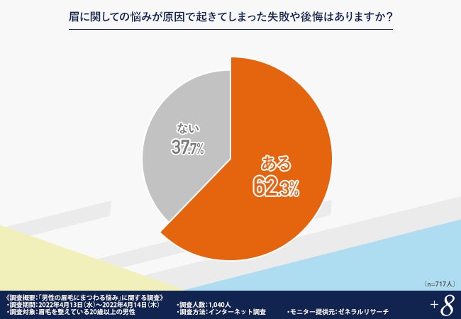 そこで、「眉に関しての悩みが原因で起きてしまった失敗や後悔はありますか?」と質問したところ、6割以上の方が『ある(62.3%)』と回答しました。
