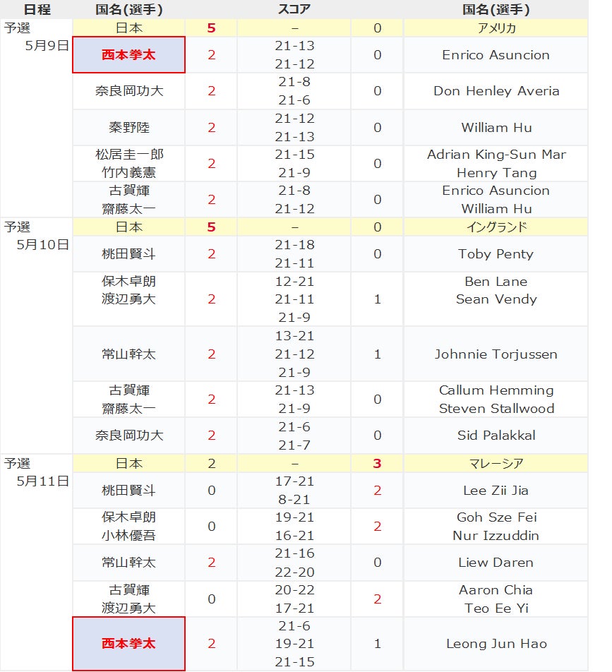 準決勝は強豪インドネシアと対戦し、第1シングルス、ダブルスを先取され0勝2敗の後がない場面で第2シングルスに出場し、世界ランキング8位の格上の選手と対戦。第1ゲームを接戦で制すると第2ゲームは多彩なショットで相手を圧倒し勝利しました。西本選手の活躍で日本は決勝進出に望みをつなぎましたが、最後は2勝3敗で準決勝敗退となりました。