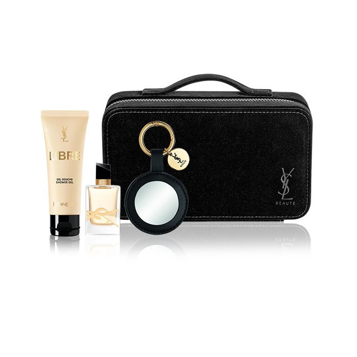 ミラー付きポーチと、フレグランス「リブレ オーデ パルファム」のミニサイズ(7.5mL)、さらに未発売の「リブレ ボディシャワージェル」(50mL)のまでついた豪華なギフト。