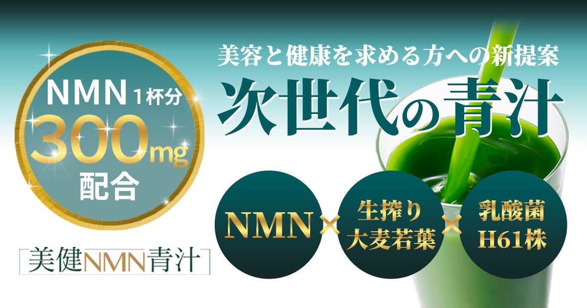 健康志向の高まる昨今において、若々しさと健康を維持するための重要な栄養素として注目が高まっているNMN(ニコチンアミドモノヌクレオチド)を国産青汁に高配合。さらにエイジングケアに適した乳酸菌H61株も配合した『美健NMN青汁』は4月末の予約販売開始直後から美容と健康に感度の高い方々をはじめ、多くのご予約やお問合せをいただいておりました。