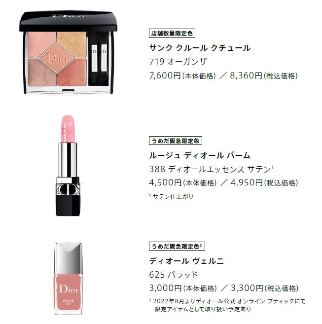 全国に先駆けて先行発売するディオールショウ コレクション1からはケア効果の高まったサンク クルール クチュールとマスカラをはじめトレンドのアイメイクを完成させるアイライナーとブロウ マスカラ、さらに店舗限定アイテムも登場いたします。