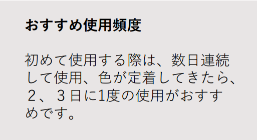 ※髪が濡れた状態の場合、衣服やタオルに色移りをすることがございます。白の衣服やタオルのご使用は避けていただく事をおすすめします。