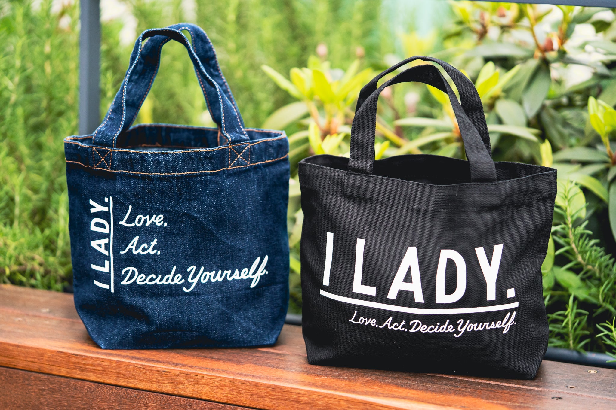 2017年に即完売となったI LADY. デニムトートバッグが復刻し、今回新たに仲間入りするオーガニックコットンを使用したシックなI LADY.トートバッグ(ブラック)と合わせ、5月20日(金)12:00より個数限定で販売いたします。