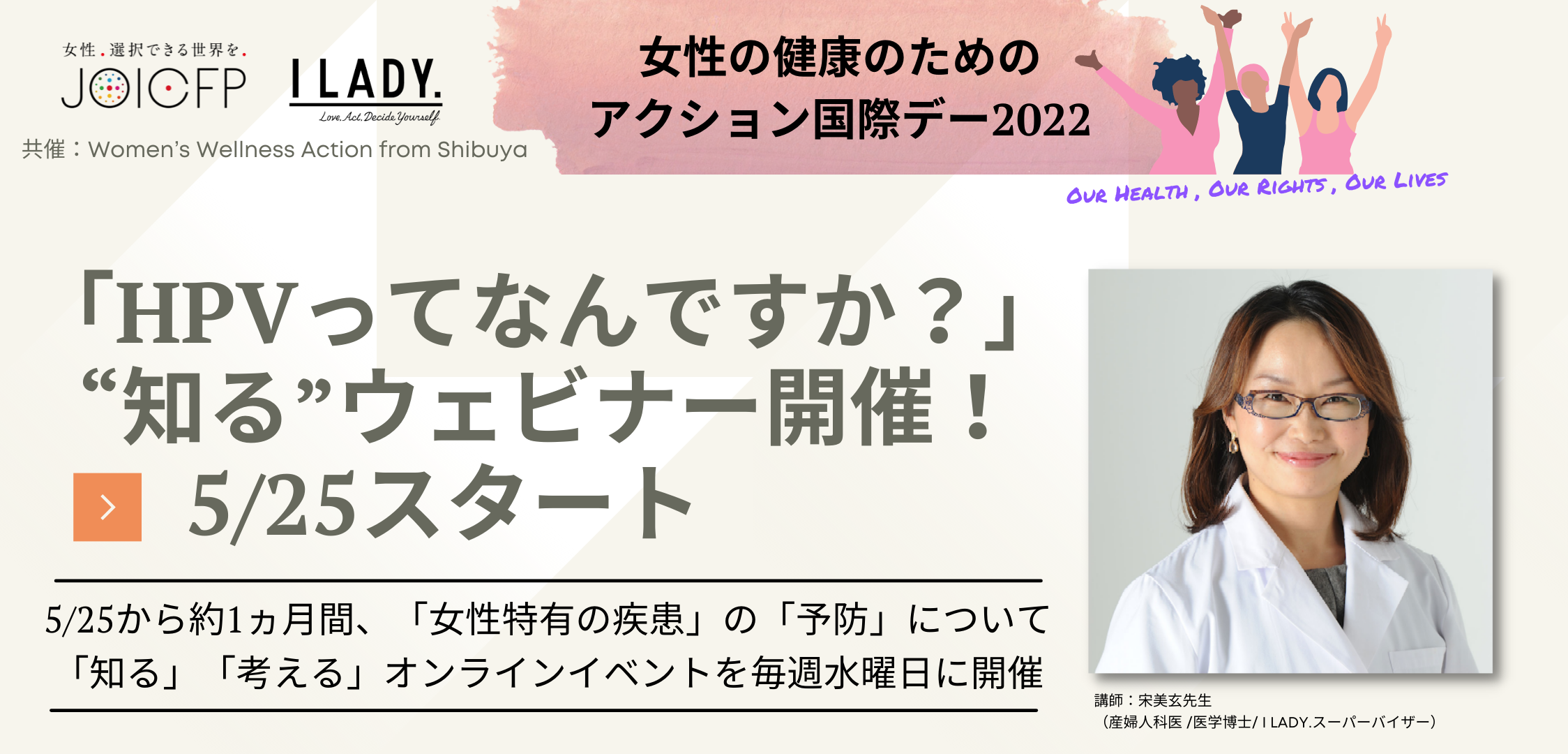 来る女性の健康のためのアクション国際デー(5月28日)に際し、公益財団法人ジョイセフは、日本国内での SRHR(セクシュアル・リプロダクティブ・ヘルス/ライツ:性と生殖に関する健康と権利)の意識向上を目的とした「I LADY.」 ( http://ilady.world/ )プロジェクトの一環で、オンラインイベントを5月25日から毎週1回、1カ月間にわたり開催します。