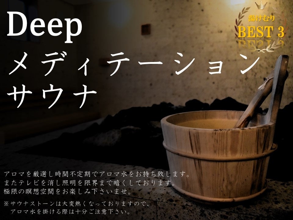 ◆メディテーションサウナ:テレビを消し、通常よりも照明を落とすことでリラックスできる空間を演出。