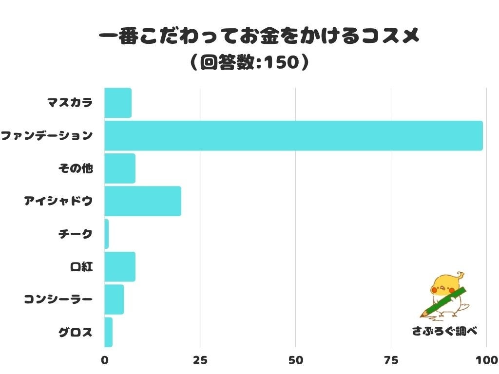 一番こだわってお金をかけるコスメをアンケートにて調査したところ、1位は「ファンデーション」でした。