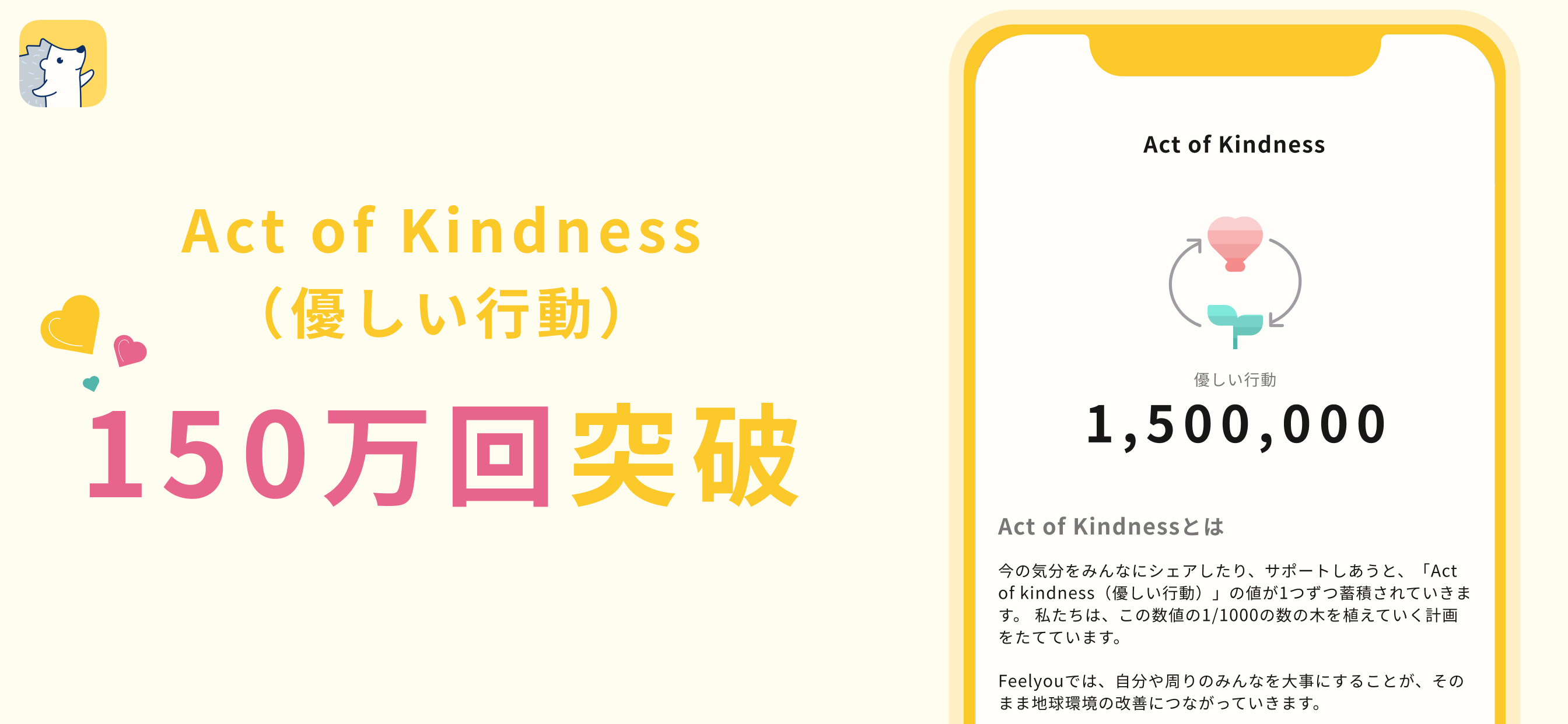 このたび、優しい行動の数が150万回を突破したことをお知らせします。