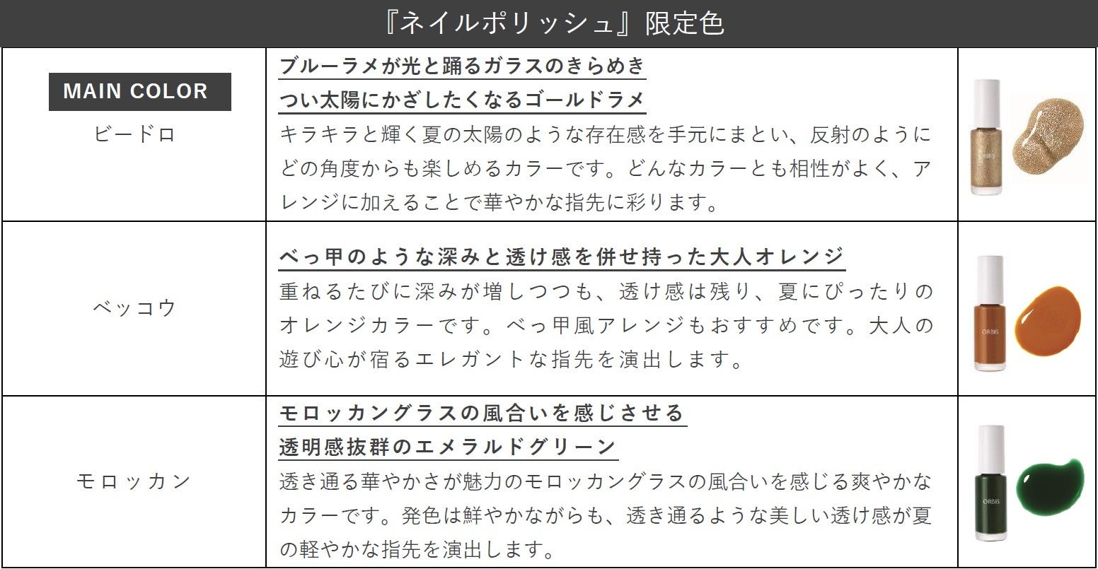 ■ 商品名:『ネイルポリッシュ』限定色 【NEW】 ビードロ/ベッコウ/モロッカン