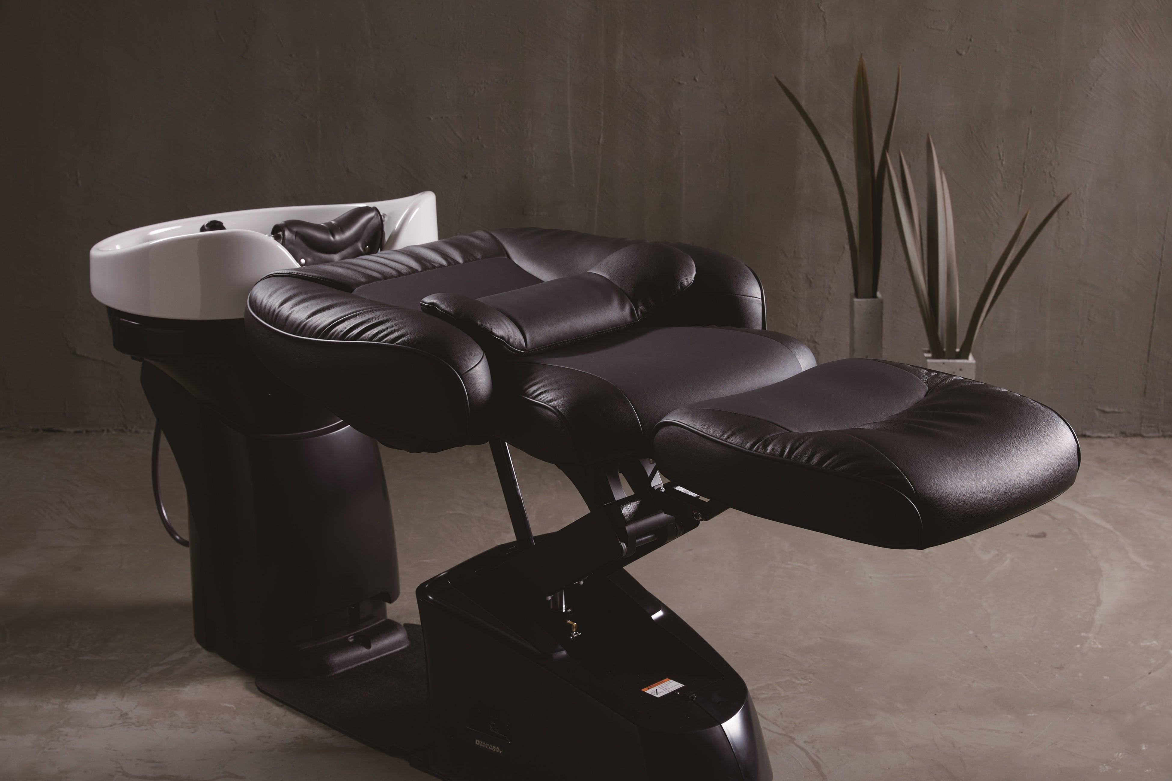 フルフラットで、全身をやわらかく包み込むシャンプー台は極上の寝心地。