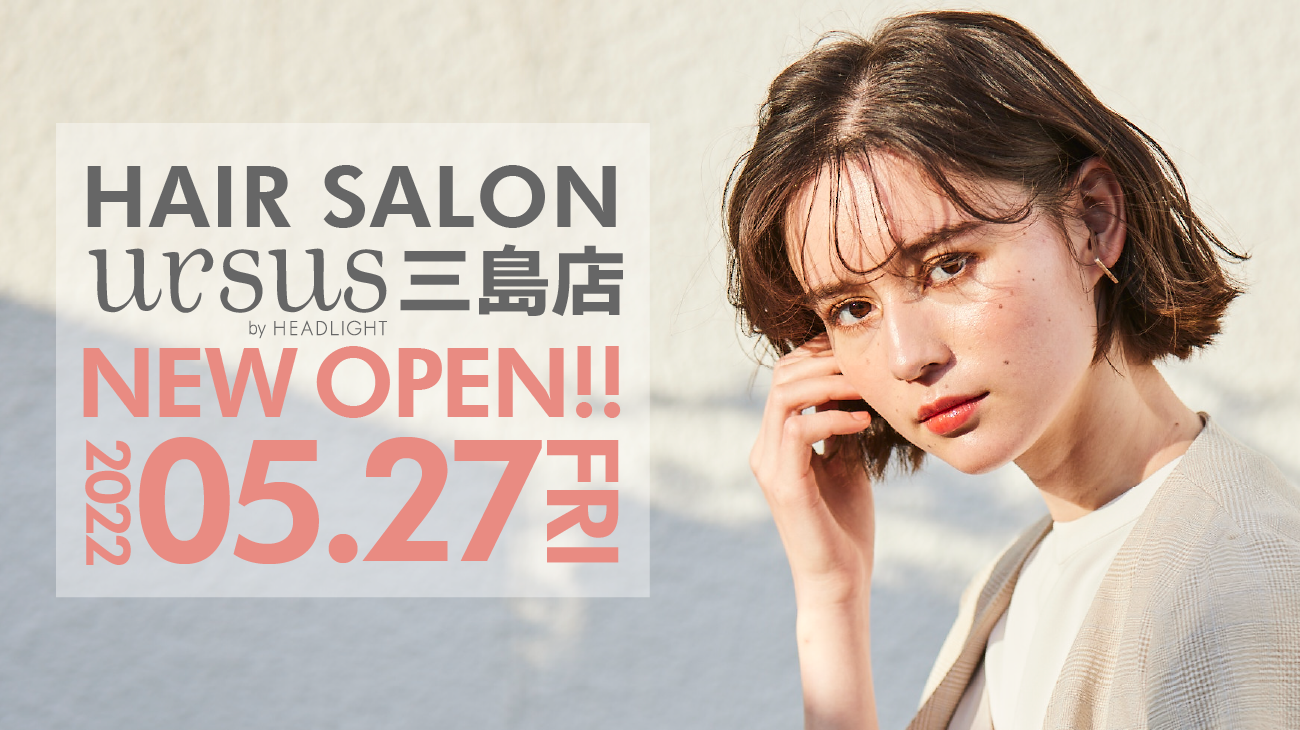 全国でヘアサロン・アイラッシュサロンなどを160店舗以上展開する株式会社ヘッドライト(本社: 東京都 港区、代表取締役 髙橋 健介)は、2022年5月27日(金) 静岡県三島市に県内3店舗目となる美容室「ursus by HEADLIGHT(アーサス バイ ヘッドライト) 三島店」をオープンします。
