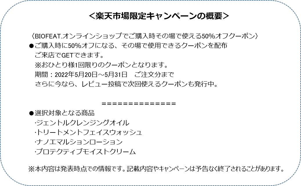 今回BIOFEAT.の「楽天市場」出店を記念して、BIOFEAT.オンラインショップで購入されたお客様限定のキャンペーンを実施します。