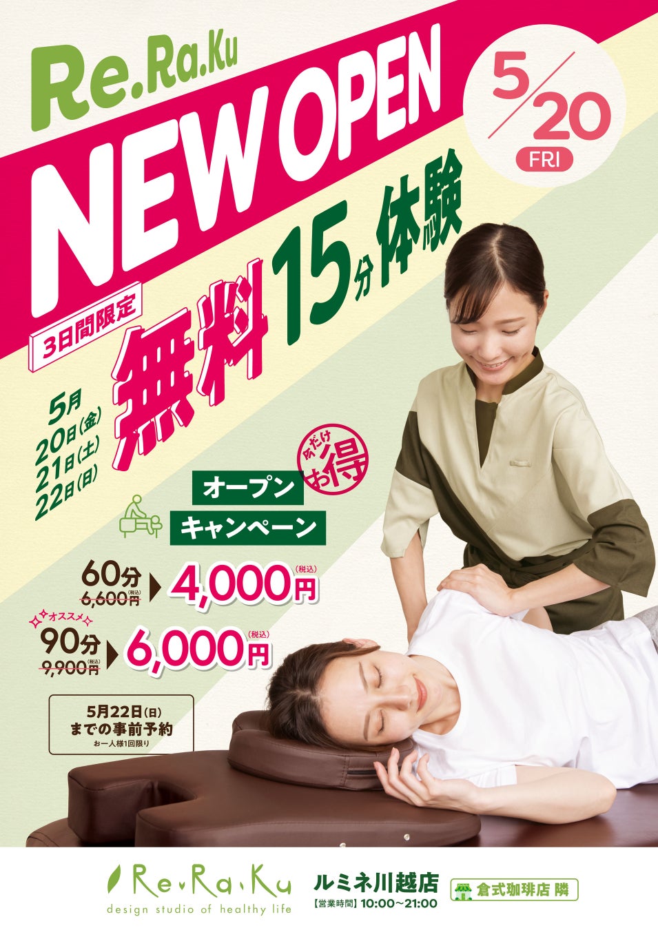 メディロムグループ(本社:東京都港区、代表取締役:江口 康二、米国Nasdaq上場 NASDAQ: MRM )はルミネ川越に2022年5月23日、リラクゼーションスタジオ「Re.Ra.Ku 」をグランドオープンいたします。