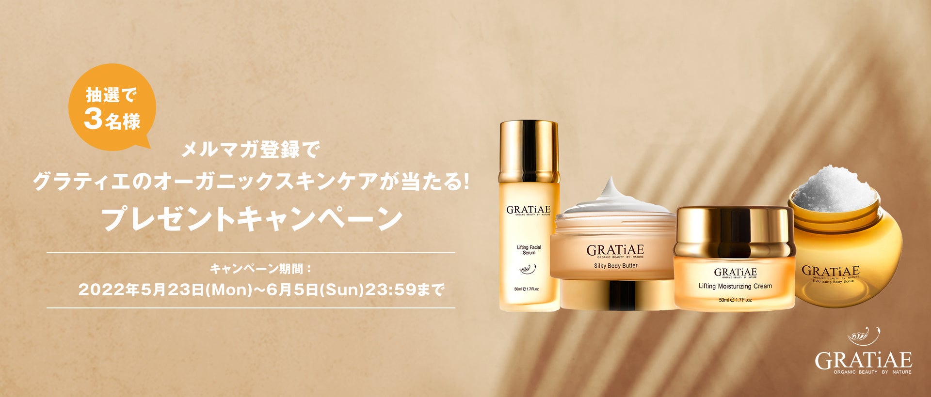 ISRAERUウェブマガジンのメールマガジンに登録した方の中から抽選で、グラティエのスキンケアアイテムを抽選で合計3名様にプレゼント!