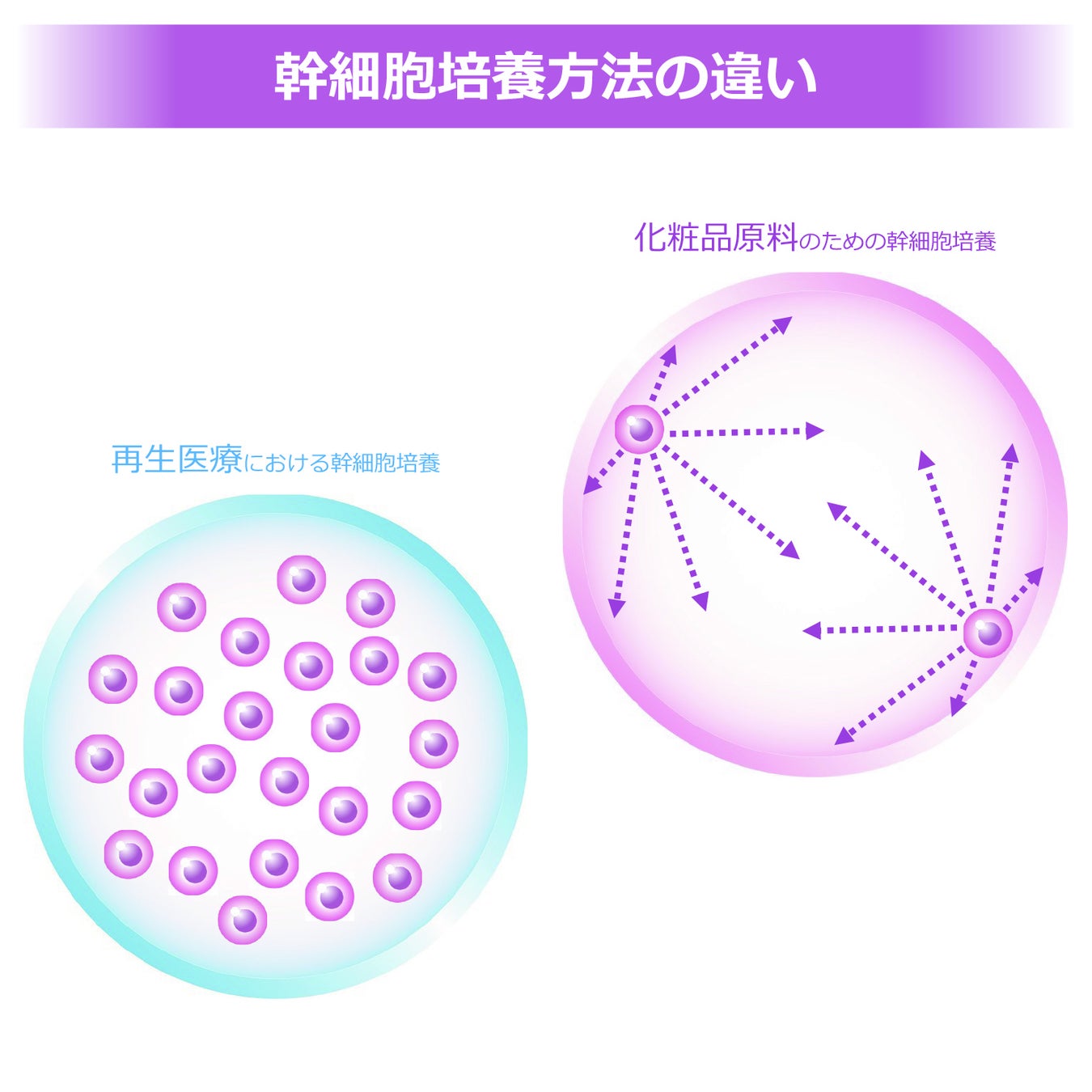 アクティバートに採用されている原料は、通常の幹細胞の培養とは全く違う概念により、化粧品原料を製造するための幹細胞の培養が行われています。通常、幹細胞を培養する際には幹細胞を増殖させることが目的となりますが、化粧品原料の場合はなるべく細胞を増殖させずに、増殖に使われるエネルギーを、成長因子やエクソソームを分泌させるために使わせます。
